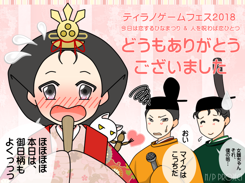 TGFことティラノゲームフェス2018の審査結果が1/24に発表されまして、「今日は恋するひなまつり」が準グランプリ、「人を呪わば恋ひとつ」が佳作を受賞しました。うわーい。どんどんぱふぱふ~。賞とは無縁の地味な人生を歩んできたので、喜びもひとしおです。ほろり。バッチは印刷して額に入れて飾っとこ…。